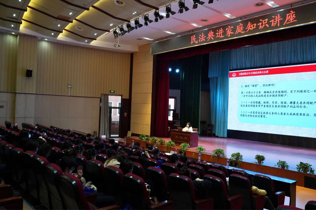 10月15日下午,新吴法院民法典宣讲团成员—旺庄法庭庭长徐贞与员额法官顾玫为新吴区妇联的百名工作人员作了题为“民法典进家庭”的专题讲座。