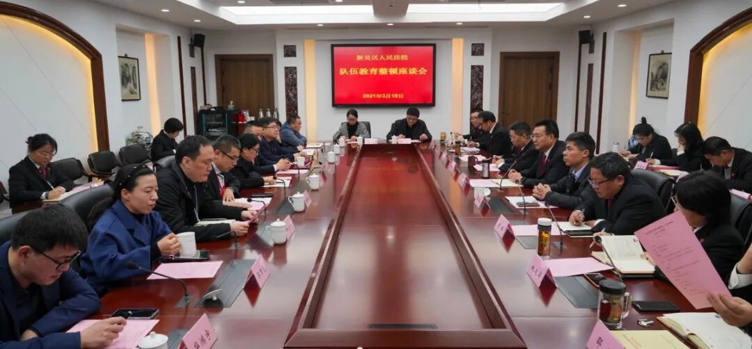 3月18日,新吴法院召开队伍教育整顿第一次座谈会,向社会各界通报教育整顿部署安排,听取各界代表意见建议。新吴法院党组书记、院长、法院队伍教育整顿领导小组组长叶志浩主持会议。区纪委监委派驻第五纪检监察组组长王挺到会指导。市、区两级人大代表、政协委员、企业家、律师、人民陪审员、案件当事人以及群众代表参加座谈。