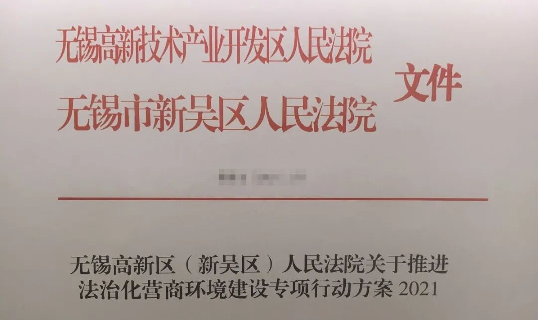 制定出台《无锡高新区(新吴区)人民法院关于推进法治化营商环境建设的行动方案2021》,发动全院干警对群众关注、党委关心的问题针对性提出建议,为区域发展战略实施提供有力法治保障;出台《进一步加强司法建议工作的规定》。