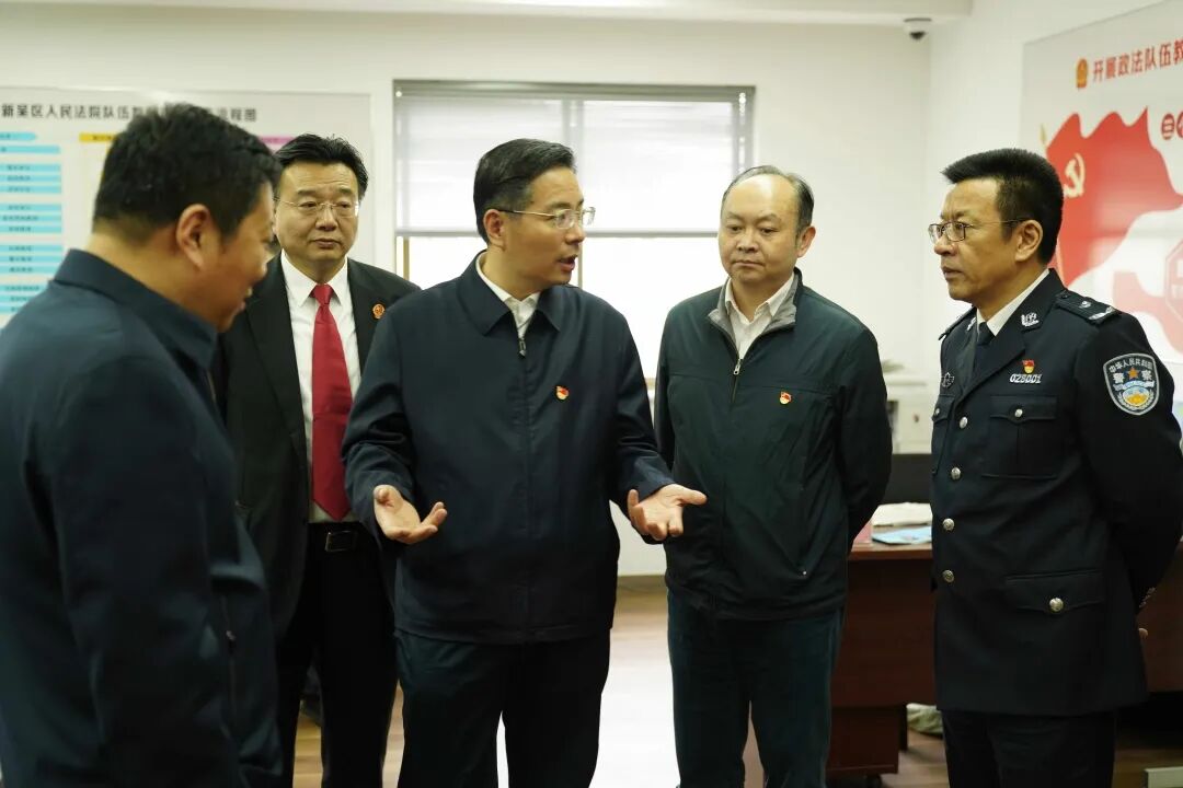 4月22日,高新区党工委副书记、管委会主任、新吴区委副书记、区长、区政法队伍教育整顿领导小组组长崔荣国来到新吴法院调研督导政法队伍教育整顿工作,区领导余银龙、丁旭东,区法院院长叶志浩、区检察院检察长丁宏伟、区司法局局长杜斌、区党政办副主任邰学爱参加调研。