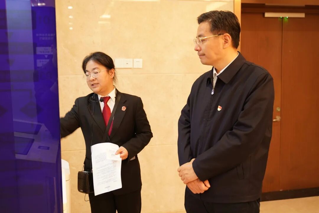 在诉讼服务中心,崔荣国区长观摩了网络庭审、阅卷自助查询终端、辅助填单终端等“智能化”诉讼服务设施,询问了裁判文书上网、公益律师值班、网上立案等服务措施的实施情况,表示要进一步提升智慧化建设水平,切实提供便民利民诉讼服务。