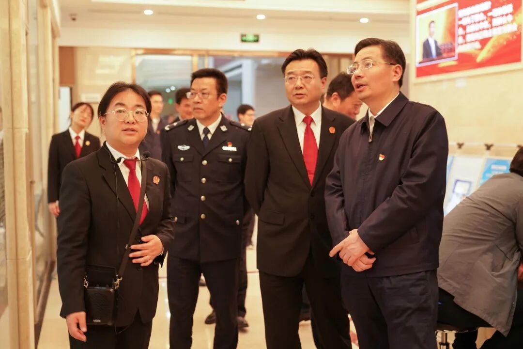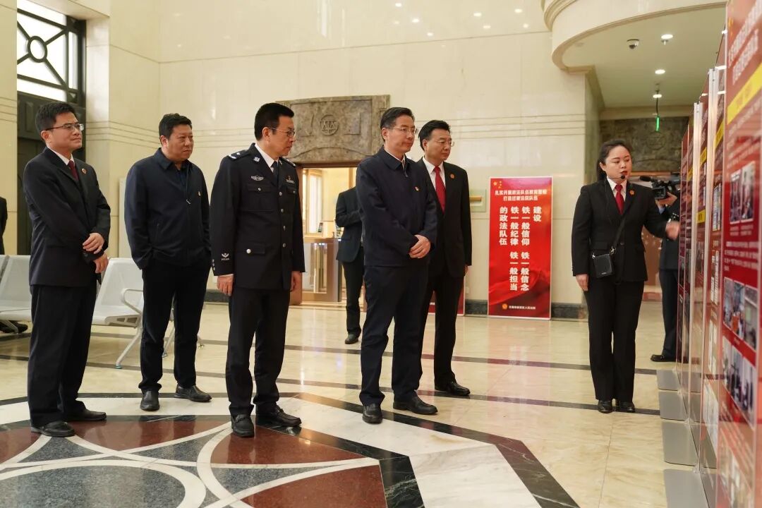 崔荣国区长重点视察了诉讼服务中心、教育整顿专班,听取了法院教育整顿及队伍建设情况汇报。