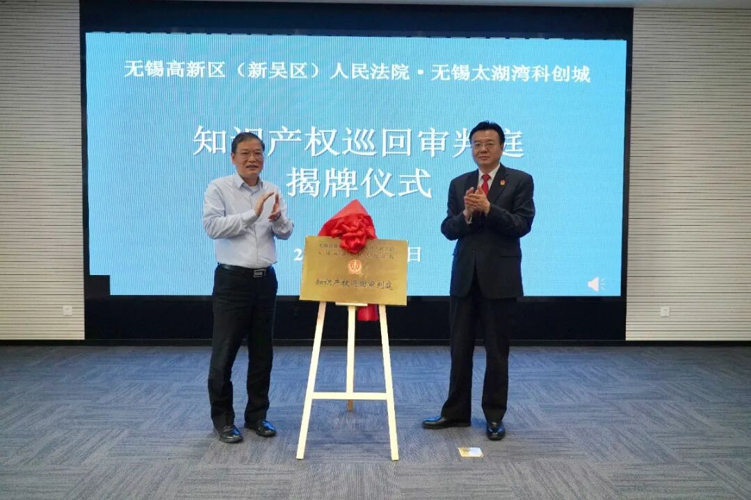 活动中,朱晓红副区长、叶志浩院长共同为新吴法院知识产权巡回审判庭揭牌。