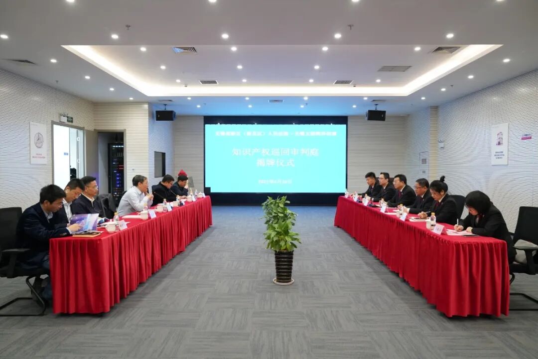 在第21个世界知识产权日,为深入贯彻落实创新驱动发展战略和国家知识产权战略、全面加强知识产权保护的创新举措,新吴法院知识产权巡回审判庭揭牌仪式在太湖湾科创城举行。高新区党工委(新吴区委)政法委副书记王松主持仪式,高新区管委会副主任、新吴区副区长、无锡太湖国际科技园管理办公室主任朱晓红,区科技局、区市场监督管理局、科技创新促进中心、太科园管理办、区法院有关领导出席仪式。