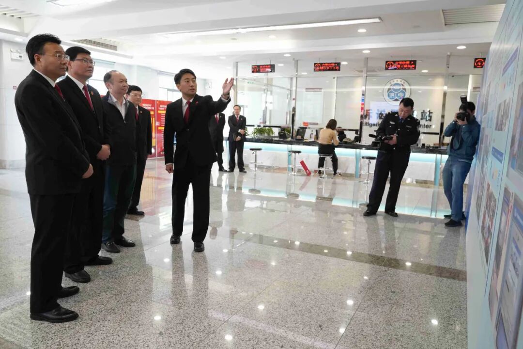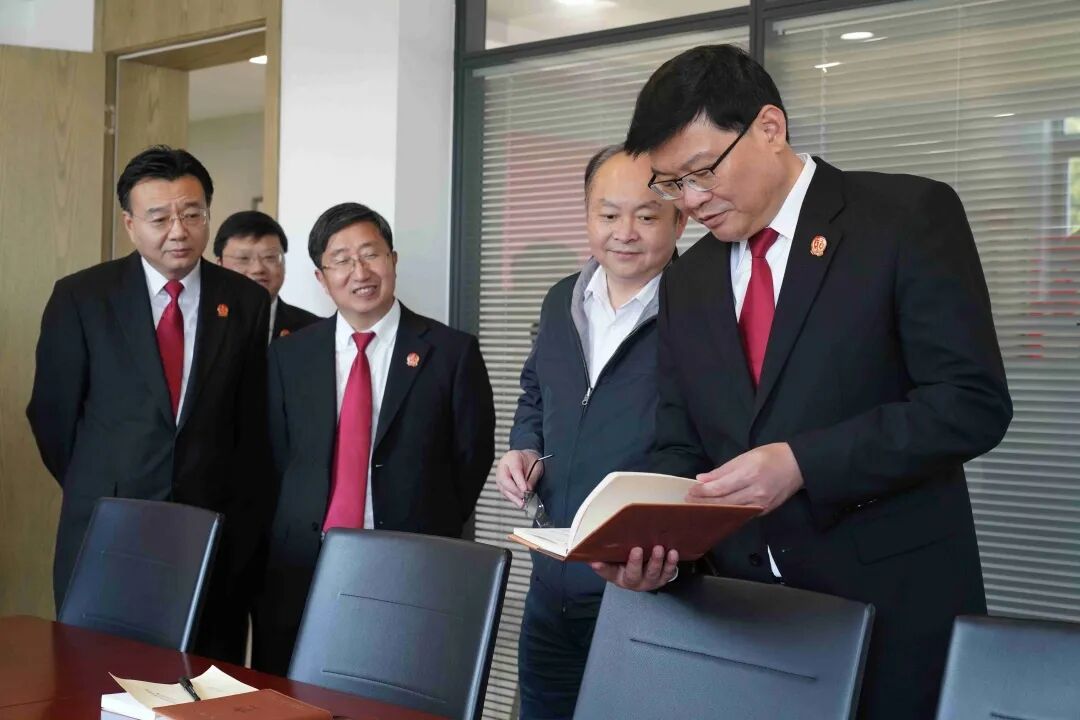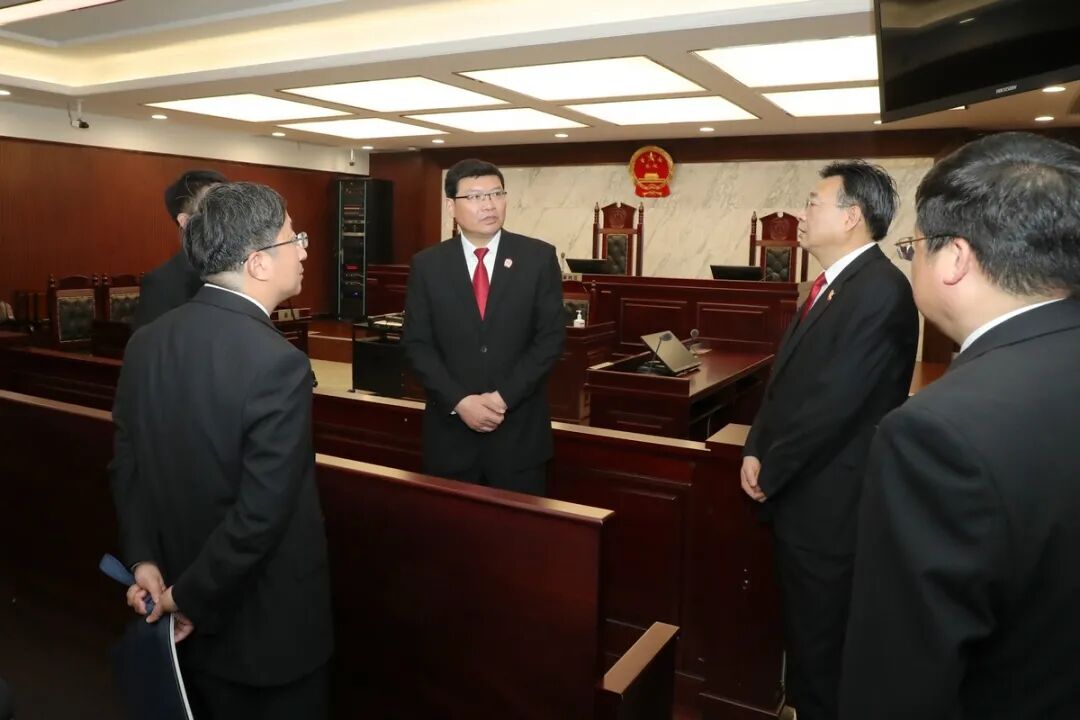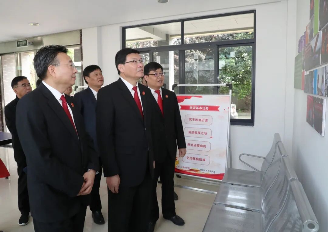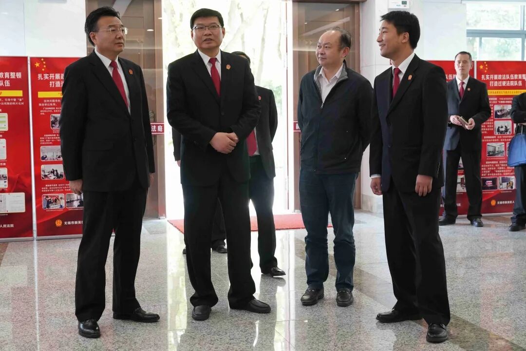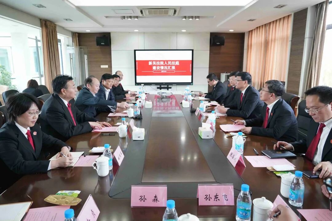 4月26日,无锡中院党组书记、院长钱斌率队赴新吴法院江溪法庭、硕放法庭,督导法院队伍教育整顿,调研人民法庭建设情况。市中院党组副书记、副院长蒋飞,高新区党工委委员、新吴区委常委、政法委书记余银龙,高新区党工委委员、新吴区委常委、空港经开区党工委书记、管委会主任、硕放街道党工委书记章晓明,新吴法院党组书记、院长叶志浩以及硕放街道相关负责人参加调研。
