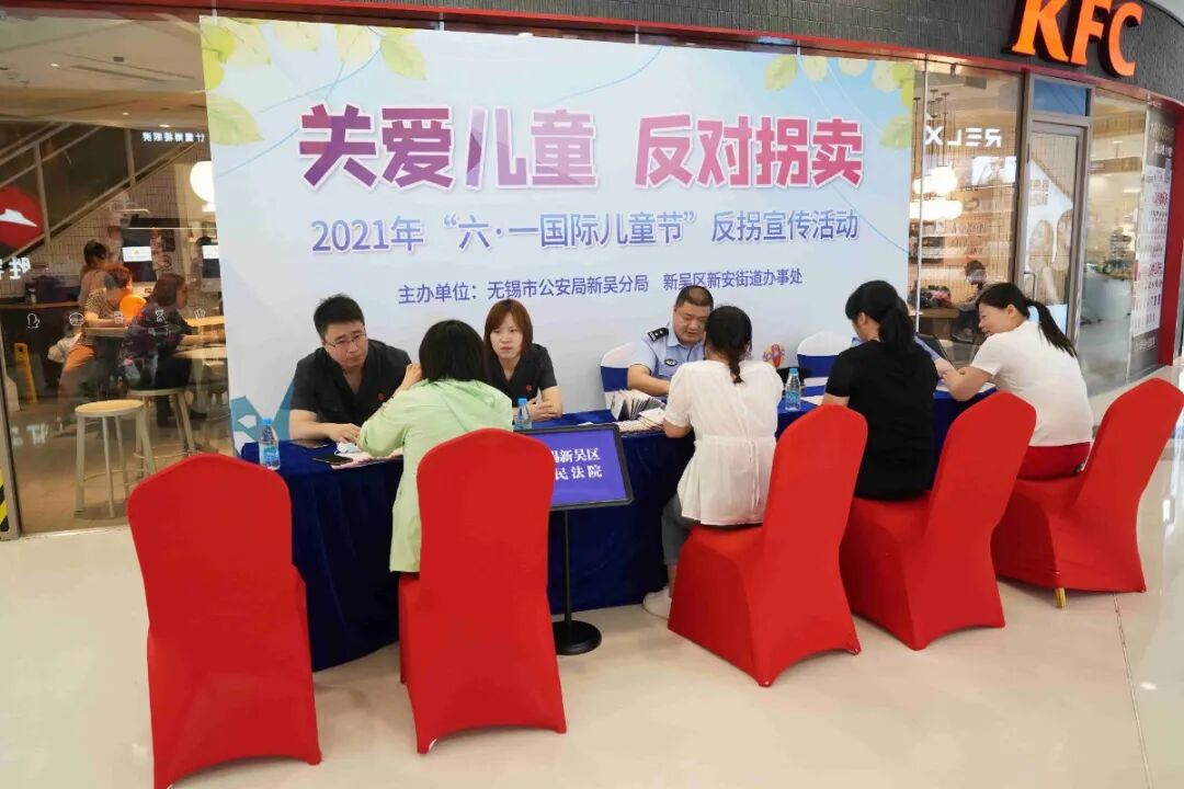 为进一步提高少年儿童的防拐意识和自我防范能力,六一儿童节当日,新吴法院联合区公安机关、检察机关在无锡市新吴区万达广场开展了一场以“关爱儿童,反对拐卖”为主题的法治宣传活动。