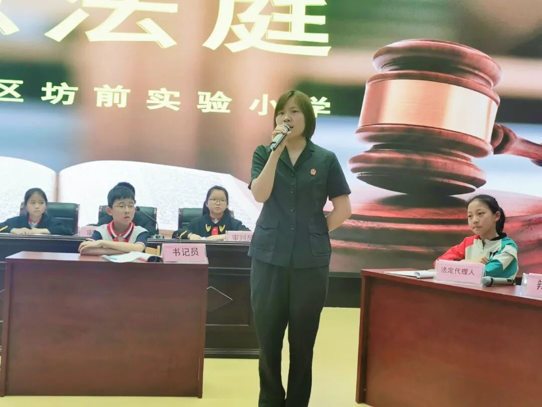 5月25日,新吴法院会同兄弟单位,在新吴区坊前实验小学举办了这场别开生面的模拟法庭庭审。审判台上,小小“体验官”们全身心投入,整个庭审控辩有序、环环相扣;旁听席上,400多名同学认真观摩,真切感受着法庭的神圣和庄严。