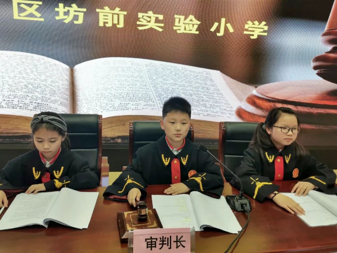 “现在开庭!”伴随着一声清脆的法槌声,一场校园盗窃的“刑事案件”庭审正式拉开序幕。定睛一瞧,台上身穿法袍威严肃穆的审判员、身着制服正气凛然的公诉人、正襟危坐一脸认真的辩护人,原来都是一群稚嫩的孩子。