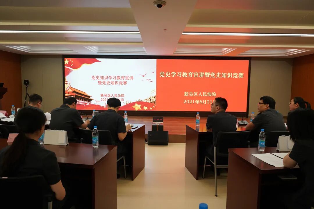 6月21日下午,此起彼伏的答题声伴随着阵阵掌声从新吴法院六楼会议室内传来。这里正在进行的是由新吴法院机关党委举办的新吴法院党史学习教育宣讲暨党史知识竞赛。