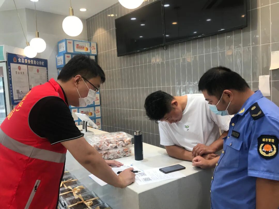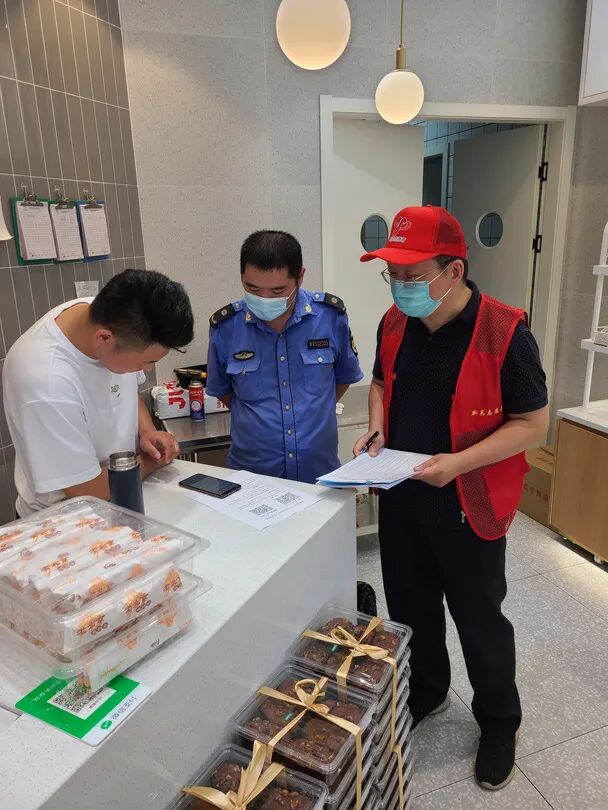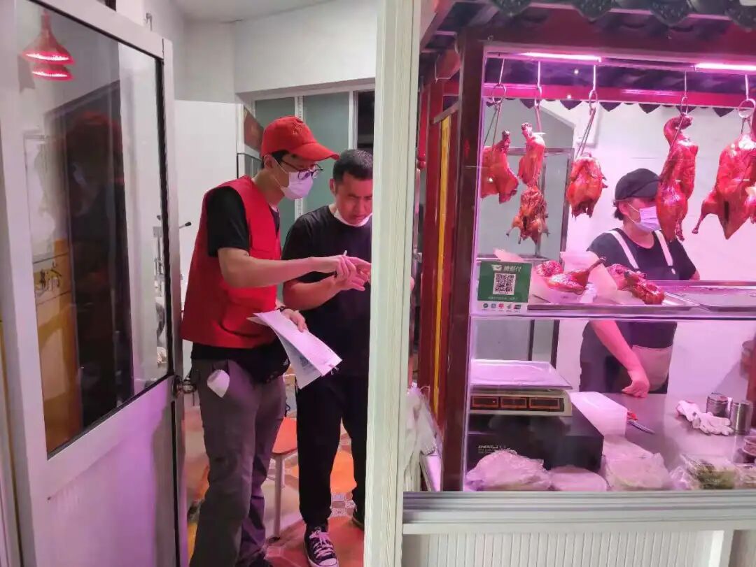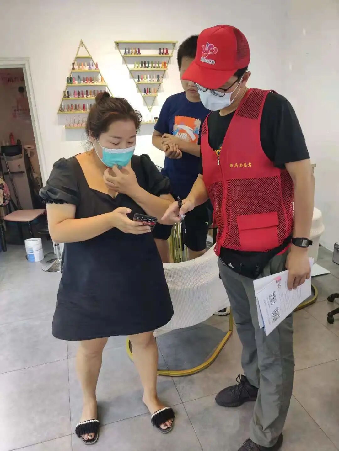 社区菜场、理发店、食品店、烟酒店、宠物店内,处处闪现着志愿者的身影,他们逐一检查商户防疫情况,确保经营商户人员核酸检测申请“一个不漏”。
