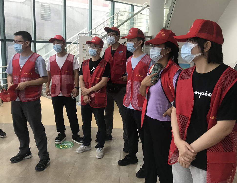 8月5日,新吴法院第二批志愿者再次集结来到社区一线支持防疫工作。除了值守进出卡口,志愿者们还分组分批来到社区商业用房为经营户们提供防疫服务。