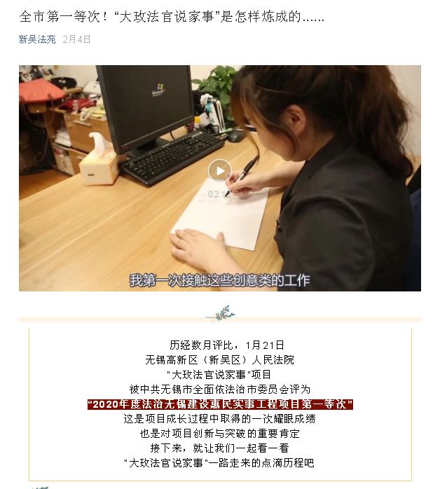 新吴法院始终以习近平新时代中国特色社会主义思想为指导,紧紧围绕法院重点工作、领导重点关注、重要品牌建设开展宣传工作,做好策划工作,将司法工作倡导的社会价值、审判一线部门的亮点以最佳的方式进行呈现。