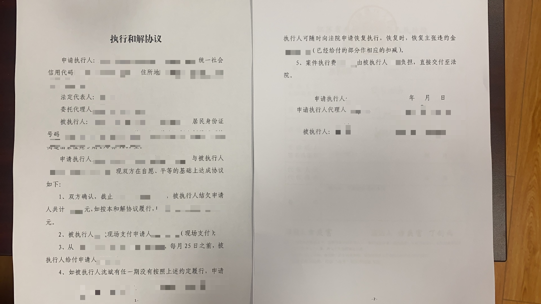深夜,沈某、沈某的家人、申请人再次坐在了一起。了解到沈某的实际情况和偿还能力后,执行法官晓之以情动之以理,积极促成双方协商沟通。最终双方达成了和解协议,申请人主动免除了借款利息及延迟履行利息,沈某表哥自愿代为履行部分欠款,余款由沈某打工每月还款。“我一定会努力打工把钱还上,承担起自己应当承担的责任。”沈某表示。