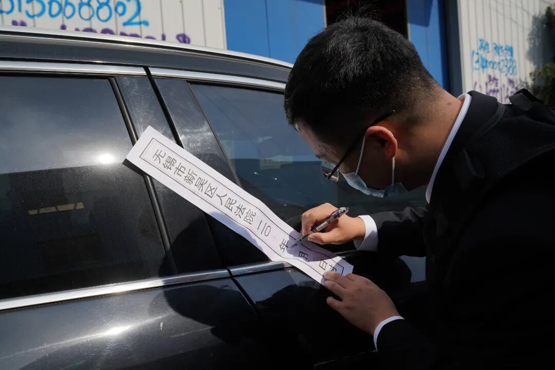 短短10余分钟,3辆警车呼啸而至。现场,经查验车辆登记证书,确认该车辆为被执行人拖拖公司(化名)所有,执行法官当机立断,立刻对该车辆进行扣押。