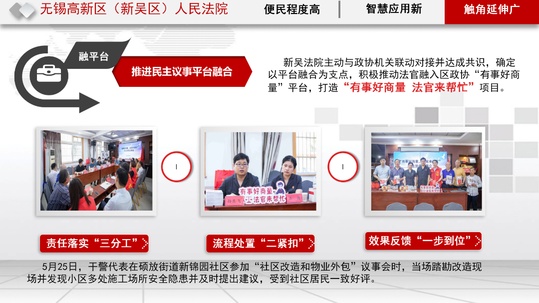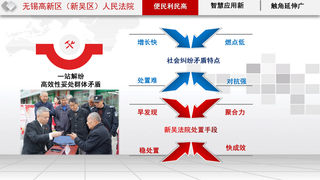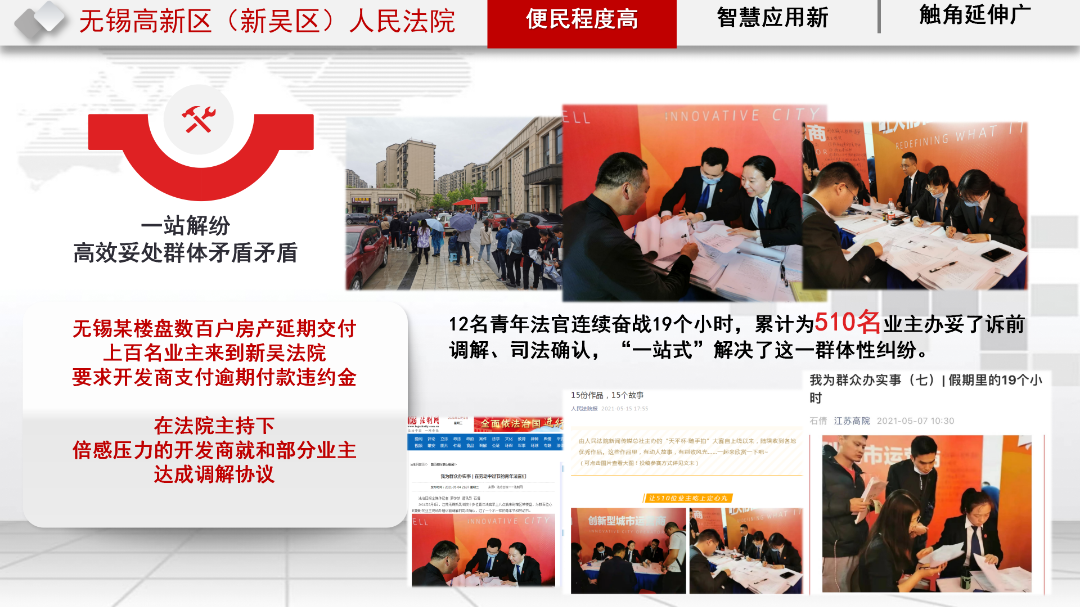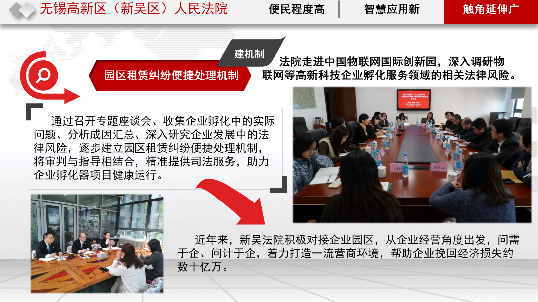 新吴法院注重从审判实际中探寻经验。动脑筋、想办法、集智慧、出实招,是新吴法院在惠民助企争先具体实践中的扎实举措。
