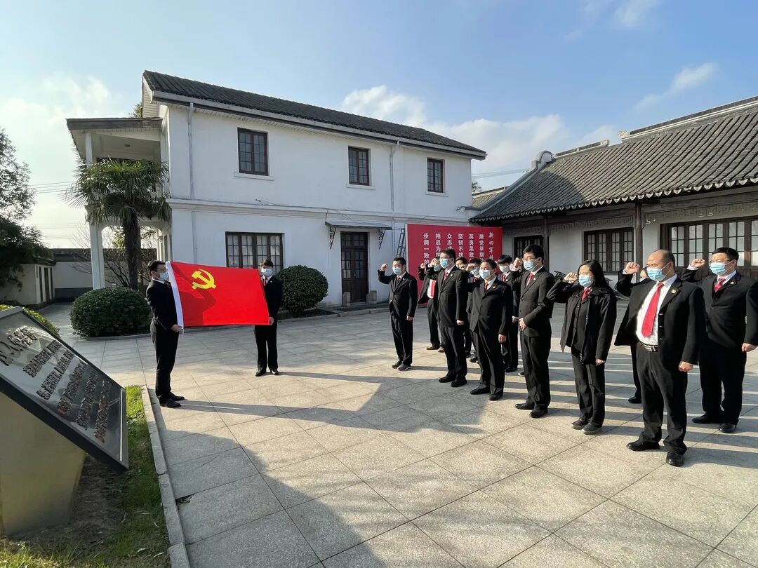 新四军六师师部旧址纪念馆位于无锡市锡山区锡北镇寨门村诸巷,其前身是新四军挺进苏南东路地区进行抗日斗争的一个重要指挥部。纪念馆内,党员们认真聆听讲解员讲解,驻足观摩历史物件。过程中,党员们还观看了根据史实还原制作的爱国主义教育影片《锡北1941》,深入了解了这一段可歌可泣的历史,也加深了对“江抗(江南抗日义勇军)”和“新江抗(江南抗日救国军)”的认识。参观结束前,全体党员在支部书记王秦飞带领下,重温了入党誓词。