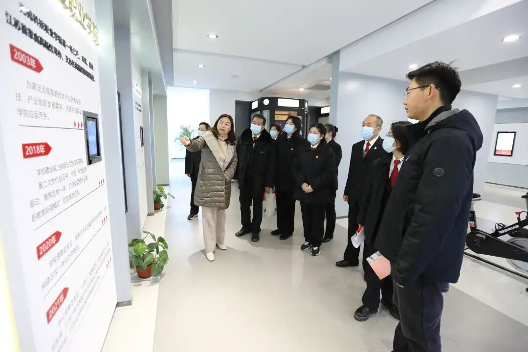无锡科技职业学院党委委员、宣传统战部部长赵娴带领第一支部党员们参观了体验馆内的序厅、悦学区、学习课堂、学习加油站等区域。