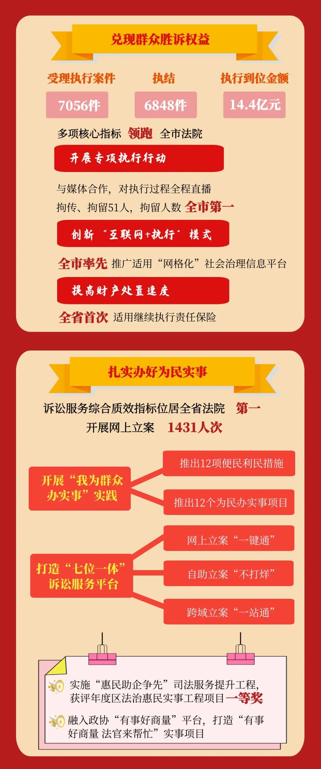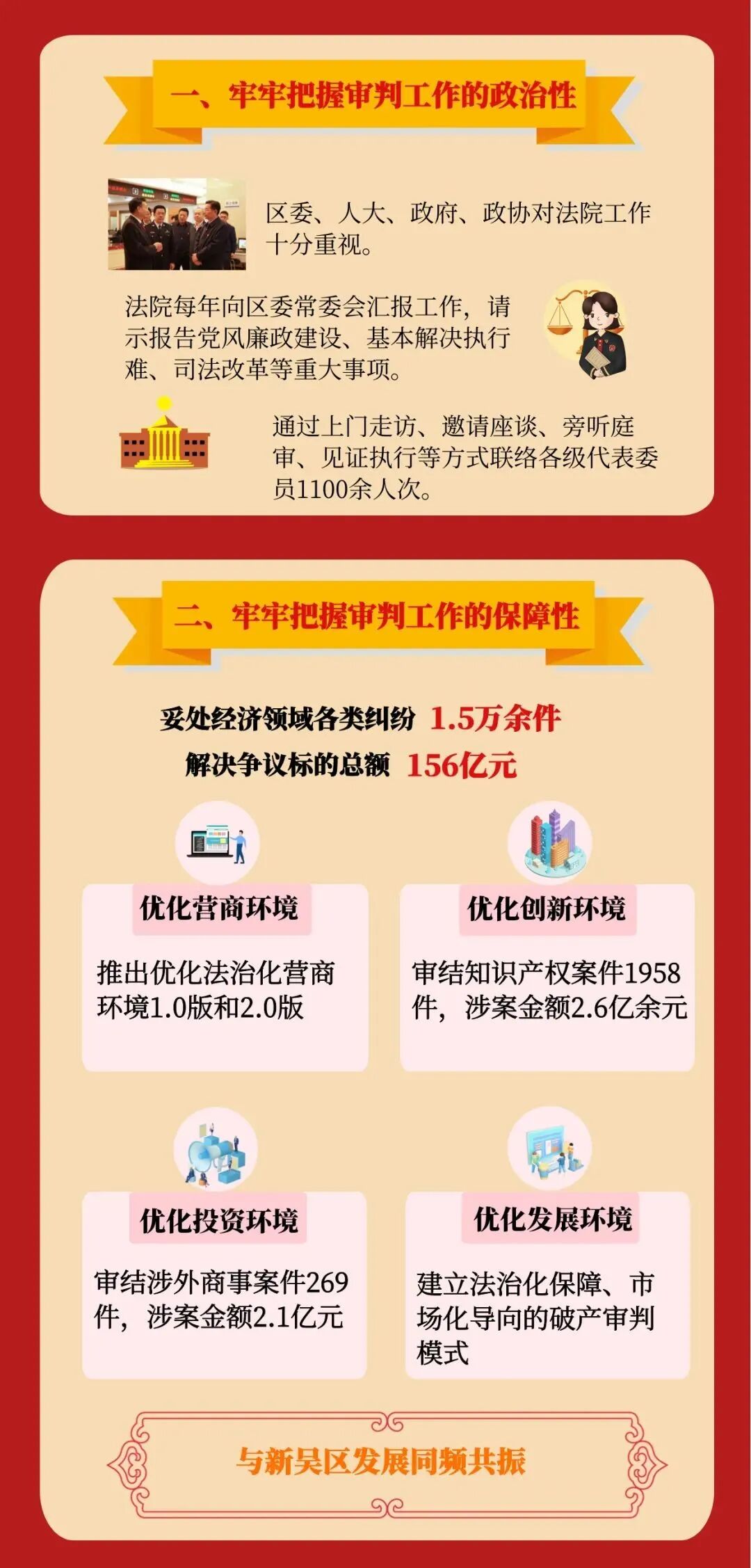新的一年,新吴法院将在区委的坚强领导和区人大及其常委会的有力监督下,聚焦“争当表率、争做示范、走在前列”重大使命,不断提高司法审判水平和司法服务能力,勇争第一、敢创唯一,为推动新吴区建设高质量落实新发展理念标杆示范区、争当无锡现代化建设走在前列先导引领区,提供更加坚强有力的司法保障和更加优质高效的司法服务!