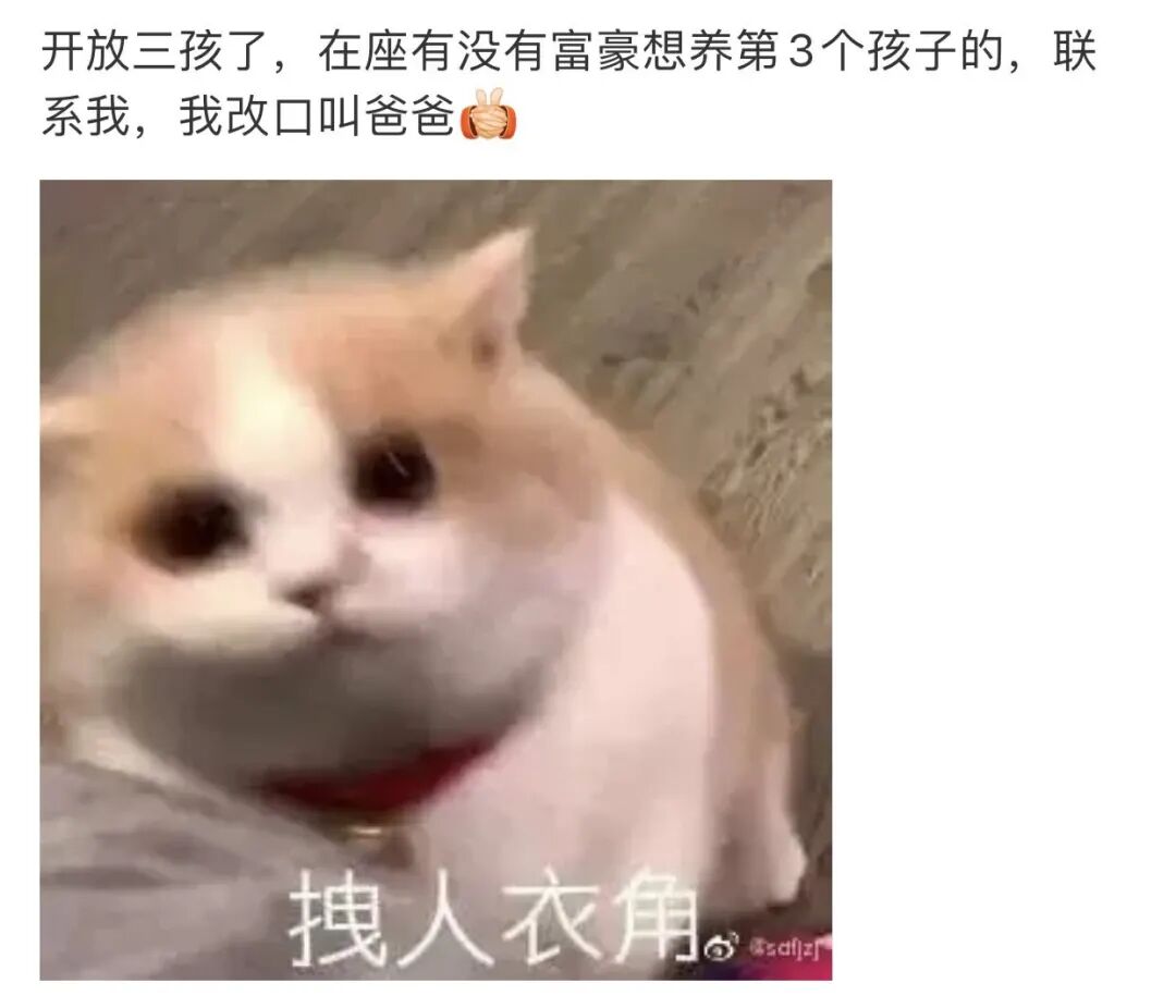也是,自从开放三胎政策以后,每条大街小巷、每个人的嘴里、见面第一句话,就是:你三胎了吗?