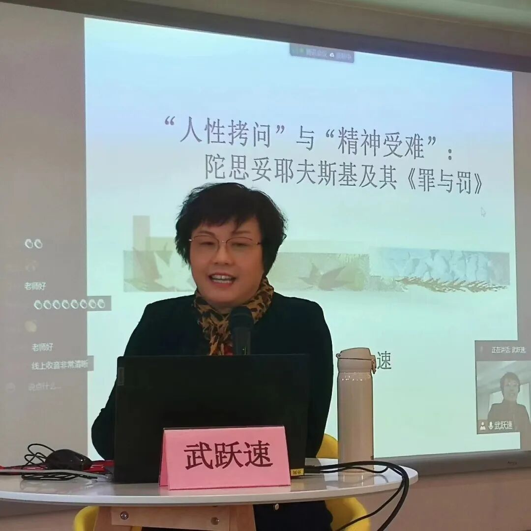 会上,武跃速老师以“人性拷问”和“精神受难”为主题思想,深度解析陀思妥耶夫斯基的长篇巨著《罪与罚》。