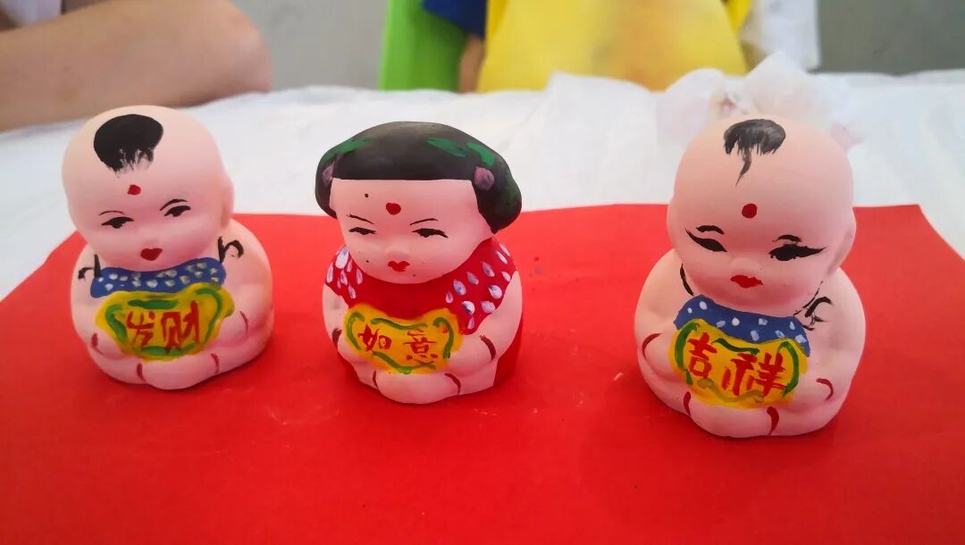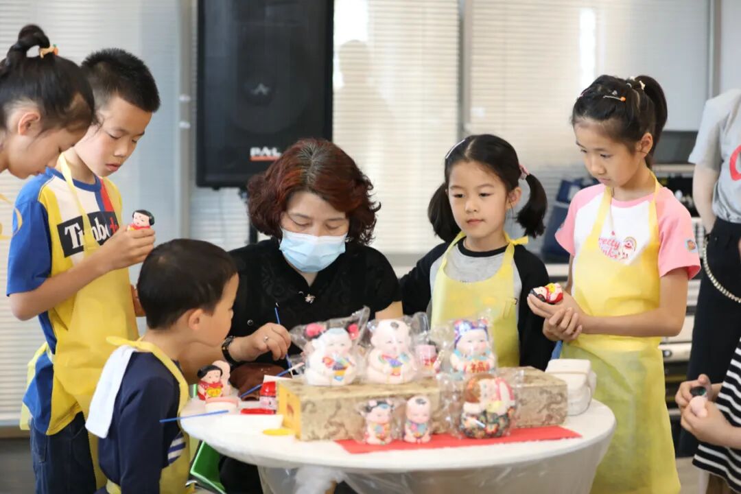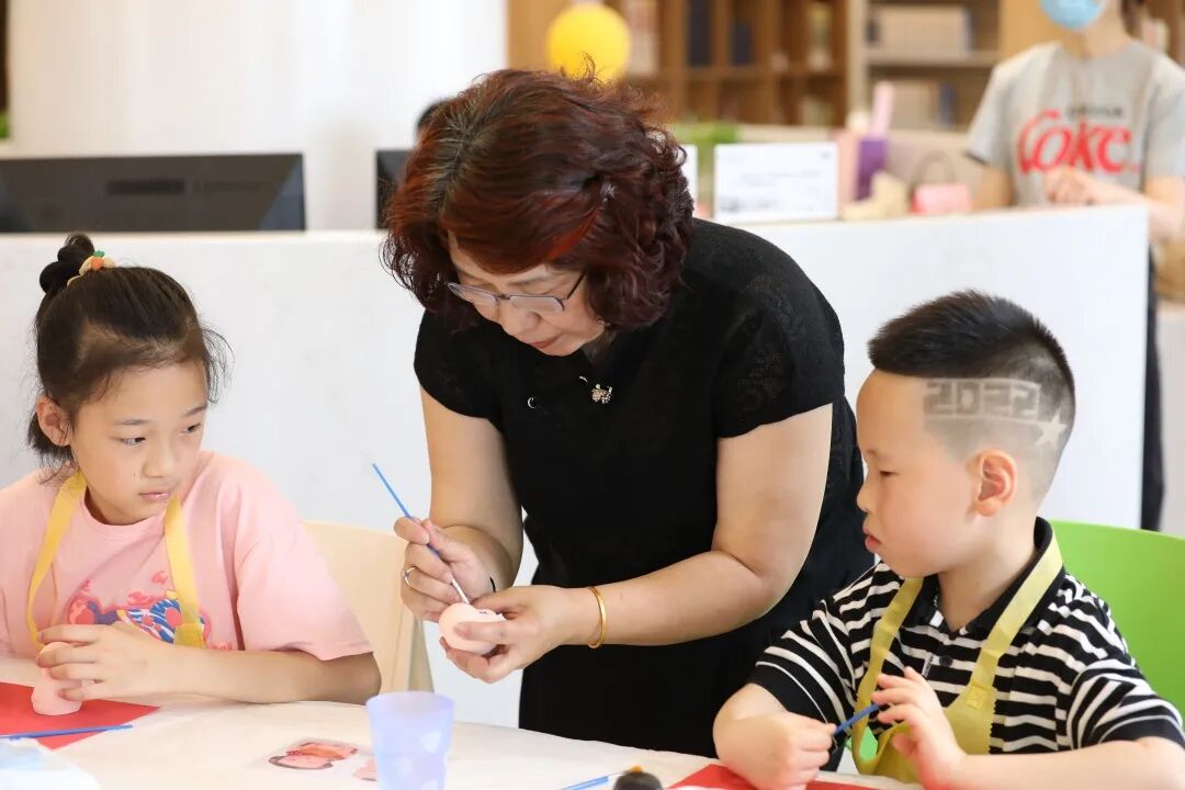 只见制作台前,孩子们纷纷拿起画笔,十分认真地在泥人福娃上勾画着。家长们不时在旁指点,你一笔我一笔和孩子一起“合作”完成泥人绘制。一个个“阿福”“阿喜”悄然成型,图书馆内充满着孩子的欢声笑语。