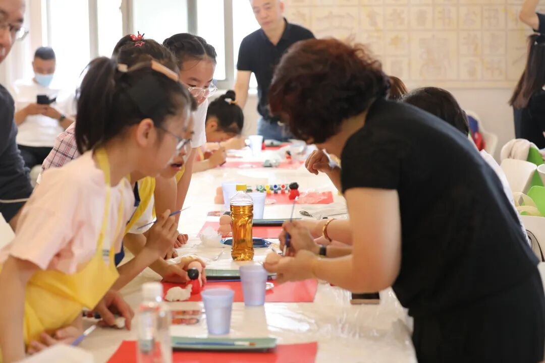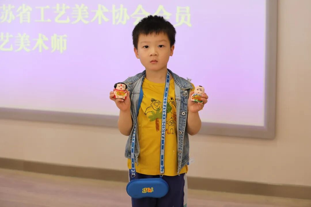 “爸爸爸爸,快看我做的福娃神不神气?”图书漂流活动结束后,孩子在父母陪伴下开始体验惠山泥人制作。无锡市彩绘惠山泥人非遗传承人过伟琦老师来到现场,通过视频溯源、实践讲解的方式向孩子们介绍惠山泥人发展历史渊源和制作技巧。孩子们听得认真,更试得踊跃。