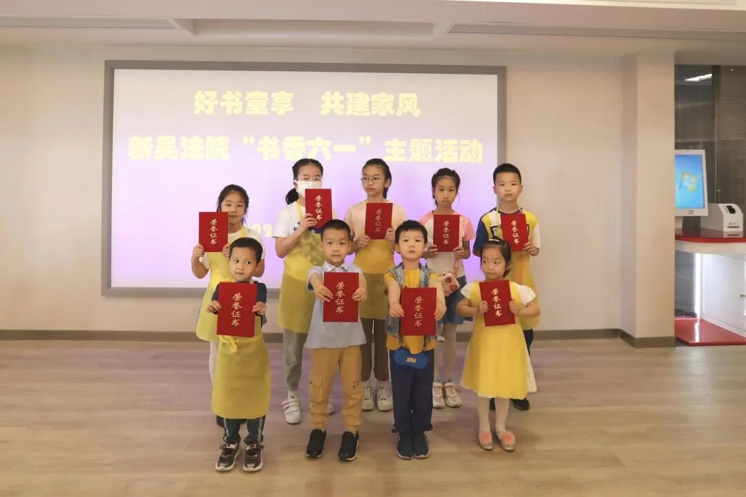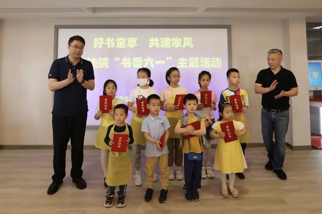 为了感谢这些可爱的孩子们,法院副院长雷海亮、执行局局长赵玥珑一同向孩子颁发了荣誉证书,授予他们“阅读小达人”的称号。孩子们迫不及待地向爸爸妈妈展示着手中红彤彤的证书,一瞬间,童稚的脸上就漾出一个个骄傲又自豪的笑容。