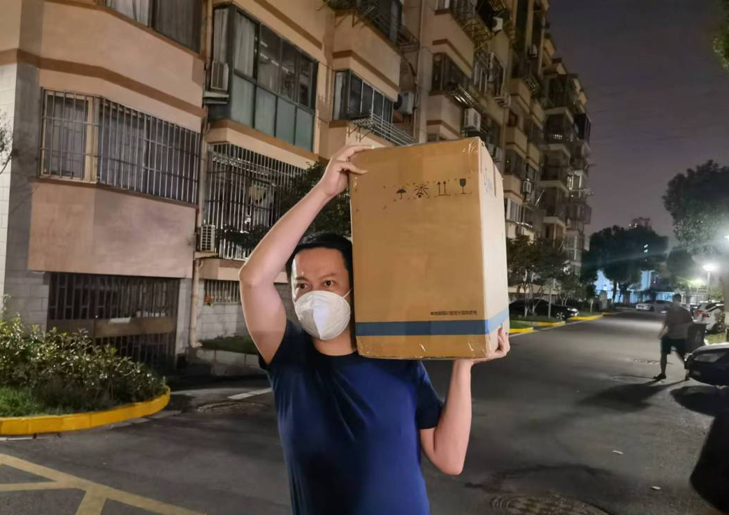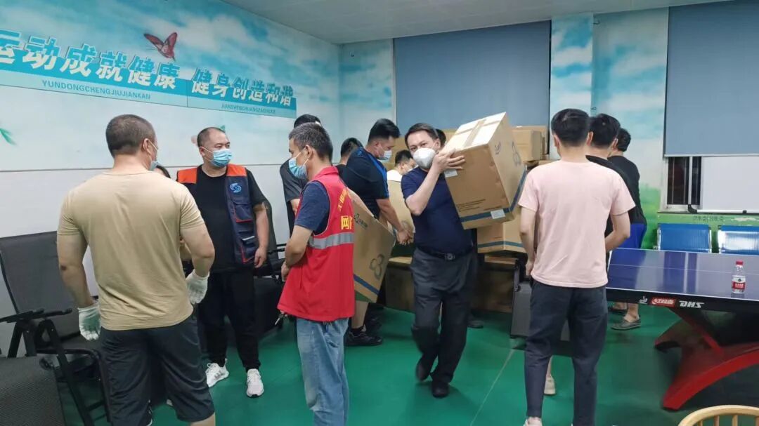 凌晨12点半,新吴法院党员突击队接到景渎社区协助通知,要求派员搬运分发抗原试剂。执行局局长赵玥珑立即带领20名干警前往社区支援。