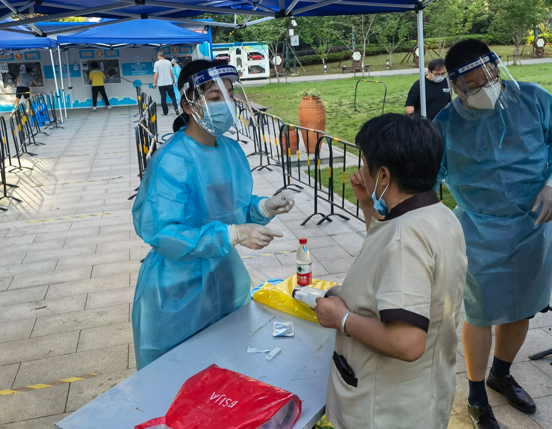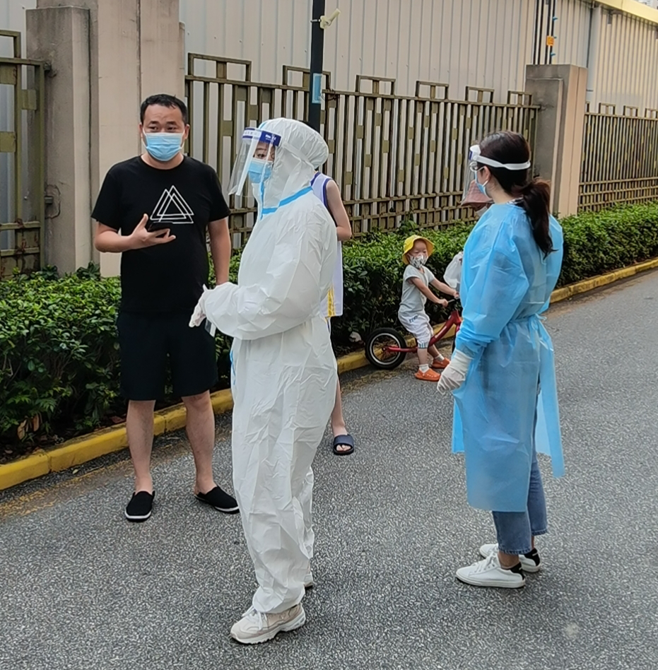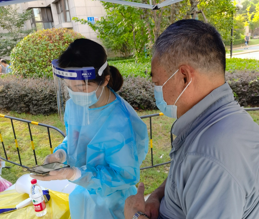 因为有不少老年人不会使用试剂,袁浩荧就一一耐心示范指导;还有一些居民自己不方便操作的,袁浩荧就帮着他们操作;小区里还有部分外籍人士,由于语言沟通不便,袁浩荧就逐一示范,这一示就是好几遍。