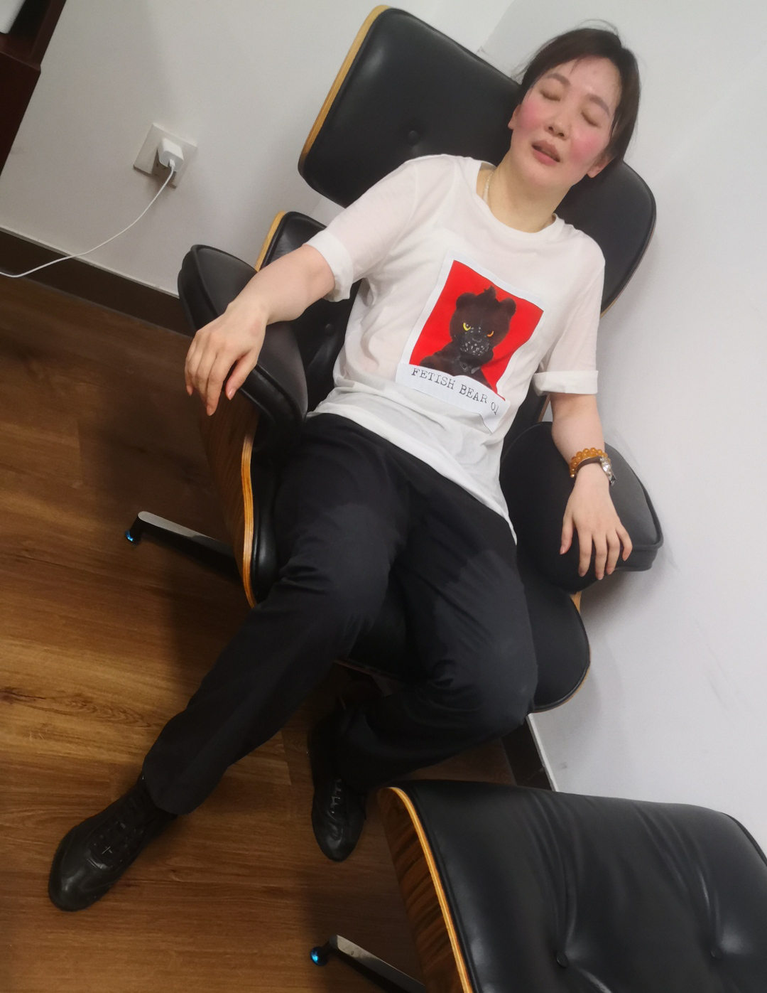 “我没事,别担心我。”回到休息点的袁浩荧虽然满身大汗、精神不济。但善良的她还在安慰忧心忡忡的同事。“放心,我休息休息就好。”她笑着说到。