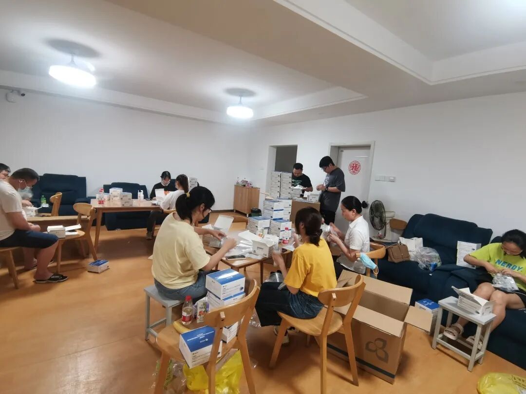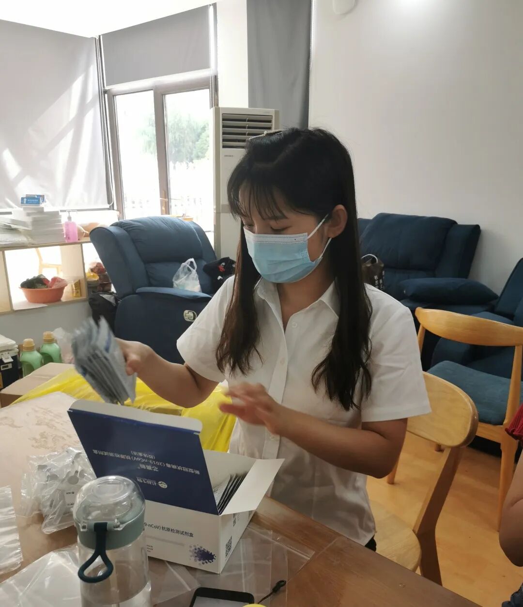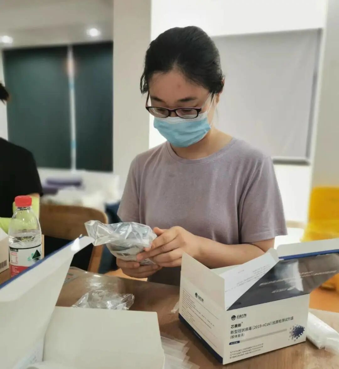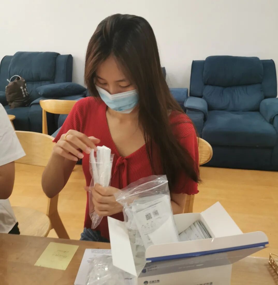 “第1箱完成!用时20分钟!”“第5箱完成!用时15分钟!”“第14箱完成!用时9分钟!”“第20箱完成!”晚上九点半,在清点完20箱共计20000份抗原后,首先完成任务的法院志愿者们伸着僵直的胳膊,结束了一天志愿工作……