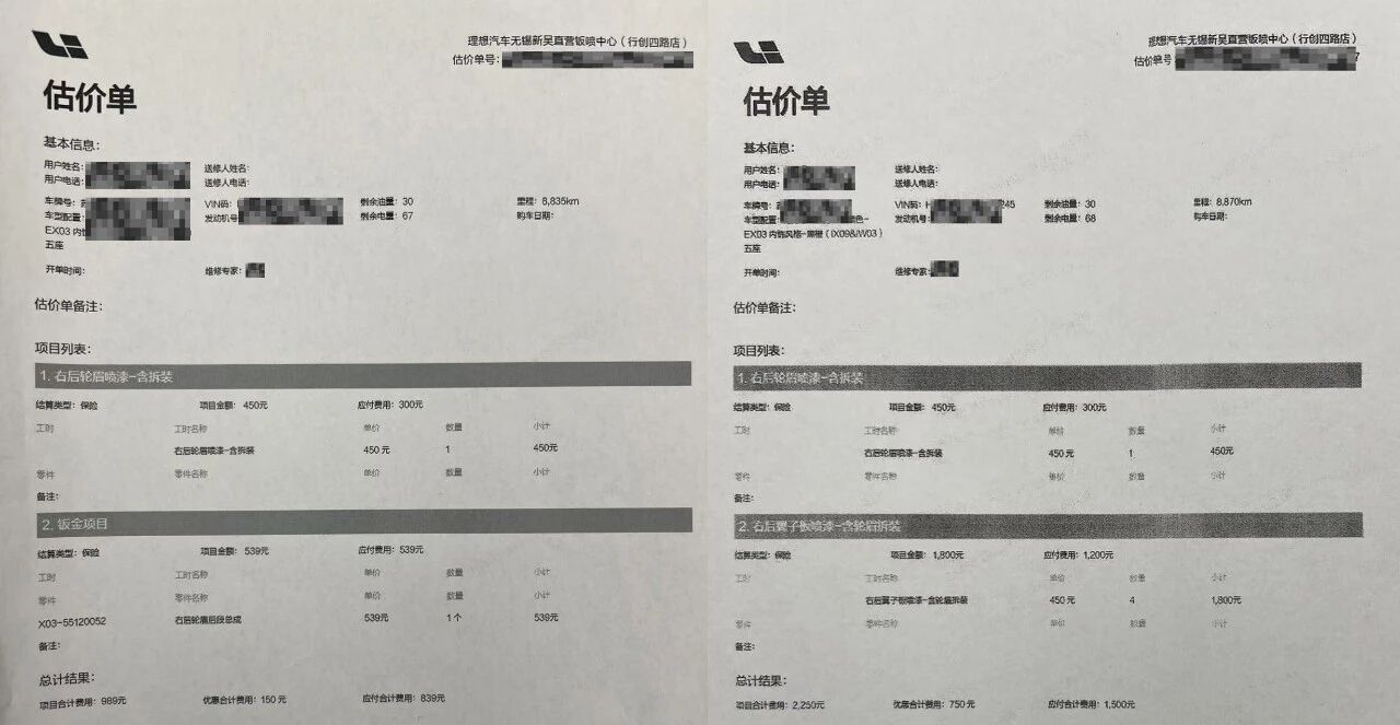 小蒋打开左后车门取物时,车门磕碰到小龚车辆右后侧,造成损伤。小龚发现后,隔天来到4S店定损,定损金额为839元。又过了两天,小龚发现车辆右后侧另有一处凹陷,于是再次来到4S店定损,定损金额为1500元。